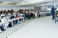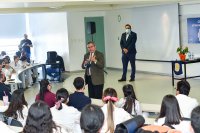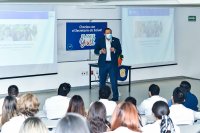 León, Gto., a 1 de noviembre de 2022.- La comunidad estudiantil de la División de Ciencias de la Salud del Campus León de la Universidad de Guanajuato (UG) recibió una conferencia impartida por el Dr. Daniel Alberto Díaz Martínez; Secretario de Salud del Estado de Guanajuato, titulada "Estrategia para la prevención universal de adicciones en jóvenes de Gto.". Actividad que forma parte del programa Charlas con el Secretario de Salud en instituciones educativas.