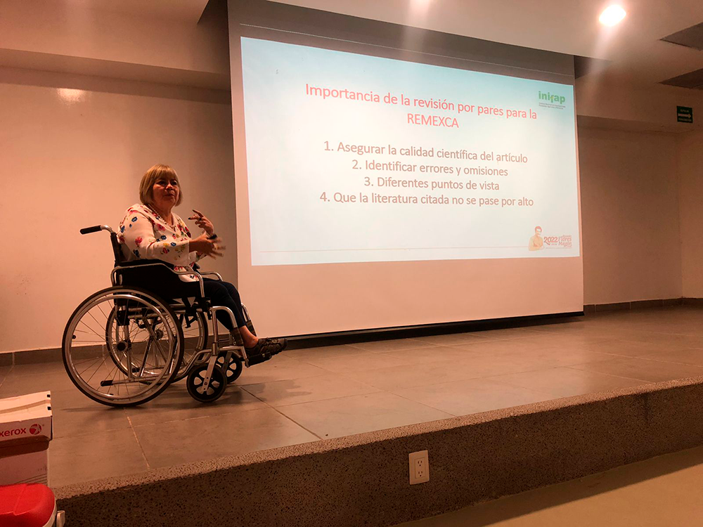 El coloquio inició con la conferencia magistral de la Dra. Dora María Sangerman Jarquín, editora en jefe de la Revista Mexicana de Ciencias Agrícolas (REMEXCA), quien habló de la historia de la revista, de su enfoque, de los procesos y requisitos para publicar en ella.