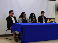 En la segunda mesa de trabajo se abordaron las experiencias de las y los egresados en programas de posgrado, la cual se realizó en formato híbrido. Presencialmente participaron Rocío Camarena Martínez, Wendy Morales Castro, Erick Franco Gaona y Joel Tapia Flores. En modalidad virtual se unieron Braulio López Morales y Mayra Yadira Mejía Sierra.