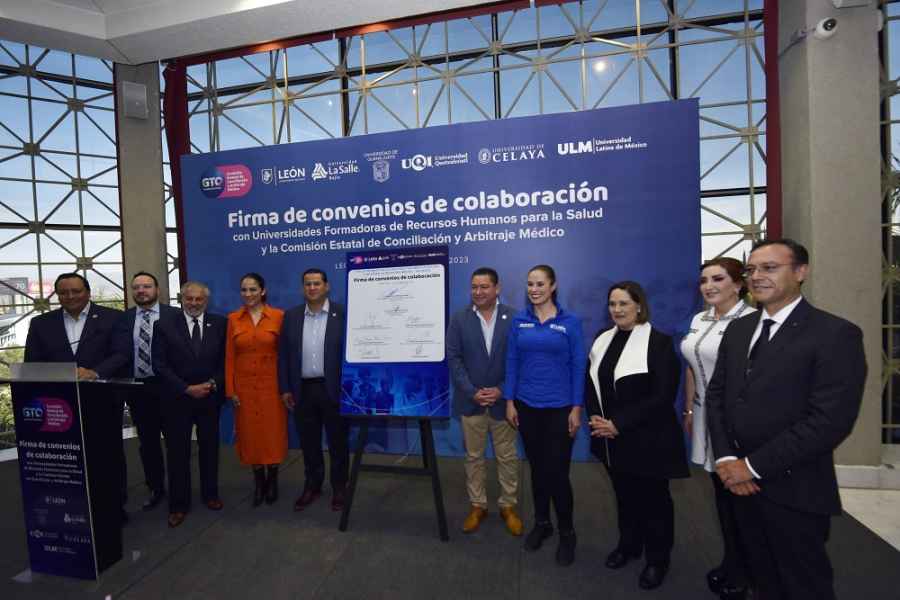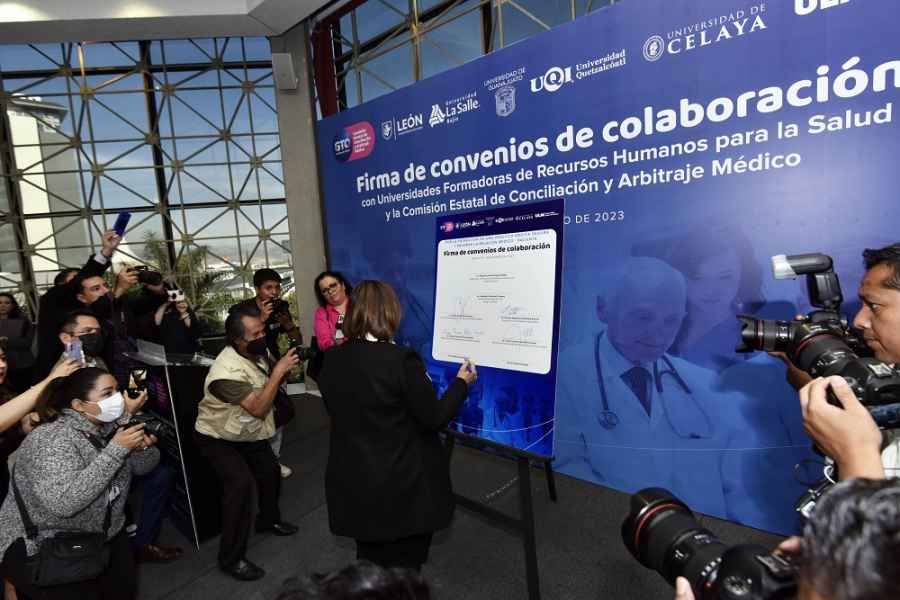 Mediante una ceremonia realizada en la Universidad de la Salle Bajío, se realizó la firma de convenio contando con la participación del Lic. Diego Sinhue Rodríguez Vallejo, Gobernador del Estado de Guanajuato; la Lic. Alejandra Gutiérrez Campos, Presidenta Municipal de León; el Dr. Jaime Hernández Centeno, Comisionado Estatal de Conciliación y Arbitraje Médico; y representantes de las universidades colaboradoras.