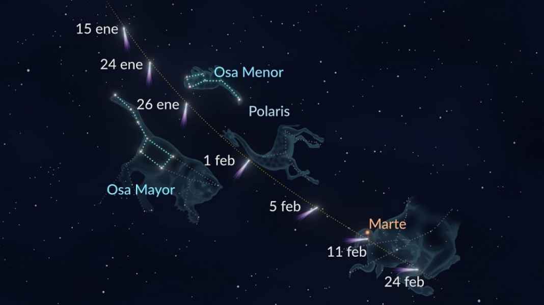 Para la observación de este cometa se sugiere contar con binoculares, aunque es posible que aumente su brillo en el mes de febrero, por lo que su localización a simple vista podría ser factible. Se deben favorecer sitios de baja contaminación lumínica, evitando los días cercanos a la Luna llena.