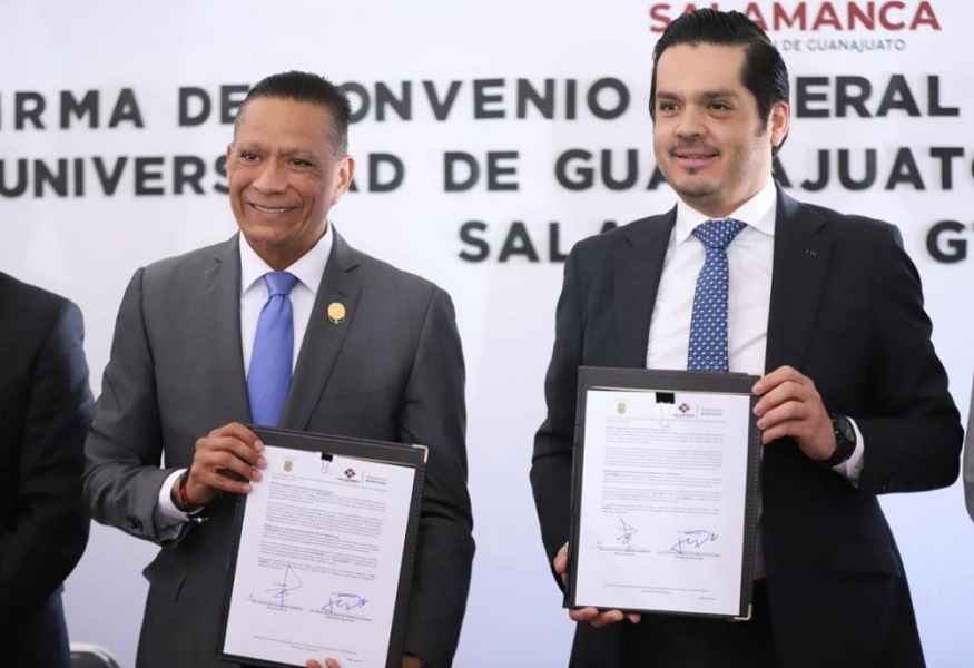 Salamanca, Gto. a 01 de febrero de 2023.- Se llevó a cabo la firma de un convenio de colaboración entre la Universidad de Guanajuato (UG) y el Municipio de Salamanca, para fomentar la participación de la comunidad académica en proyectos innovadores que impliquen un beneficio social.