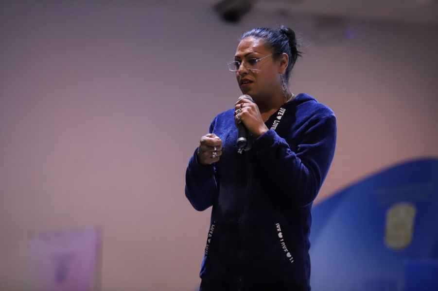 Guanajuato, Gto., a 17 de febrero de 2023.- La activista Kenya Cuevas fue objeto de una muy cálida recepción por parte de la comunidad estudiantil, durante su participación -con una conferencia magistral- en la Campaña de Educación Sexual “para decidir con responsabilidad”, organizada por la Coordinación de Desarrollo Estudiantil del Campus Guanajuato de la Universidad de Guanajuato (UG), a cargo del Lic. Reynaldo Granados Ojeda.