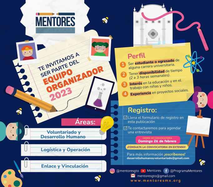 Así como visitar sus redes sociales en FB: @ProgramaMentores, TW: @MentoresUG e IG: @mentoresug.