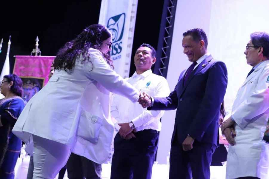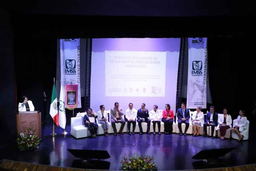 En la ceremonia en la que 190 estudiantes terminaron sus residencias y además se llevó a cabo la entrega de reconocimientos a médicos/as residentes e investigadores/as con publicaciones científicas, estuvieron presentes autoridades de la Universidad de Guanajuato (UG) institución educativa que dio aval de las especialidades, así como, autoridades del IMSS.
