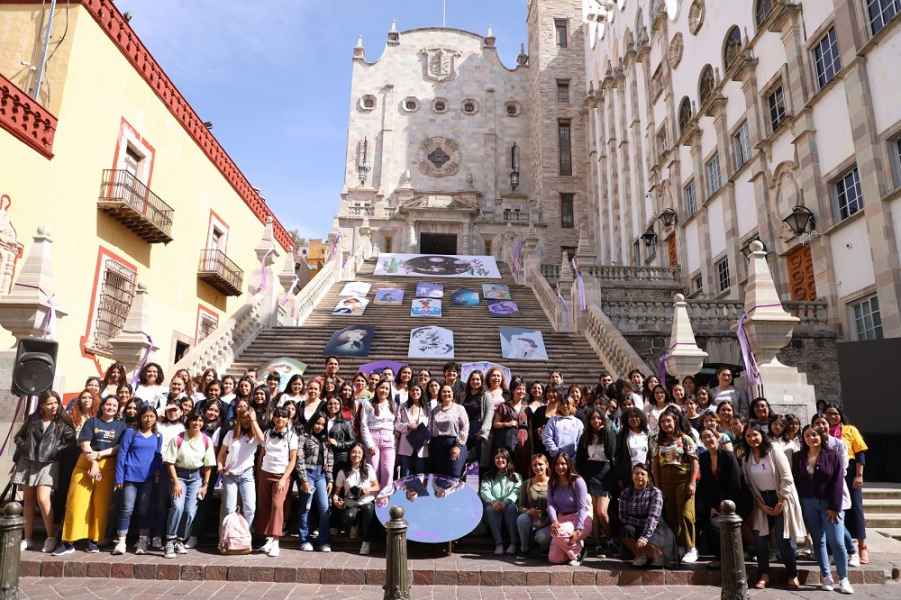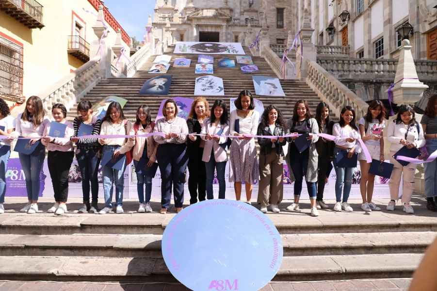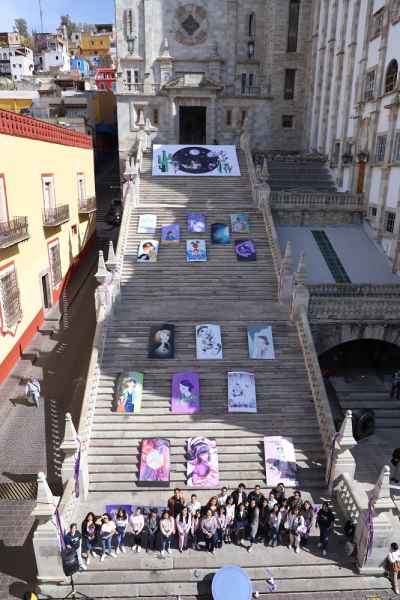 Guanajuato, Gto., a 07 de marzo de 2023.- Las Escalinatas de la Universidad de Guanajuato (UG) se vistieron con la muestra artística “Vestigios de una habitación propia” en el marco de la agenda conmemorativa 8M, es decir el Día internacional de las Mujeres, exposición que reúne el talento artístico de 25 estudiantes de la Licenciatura en Diseño Gráfico que, con el poderoso lenguaje del arte como herramienta, lograron reinterpretar el ensayo Una habitación propia, de la escritora feminista Virginia Woolf.