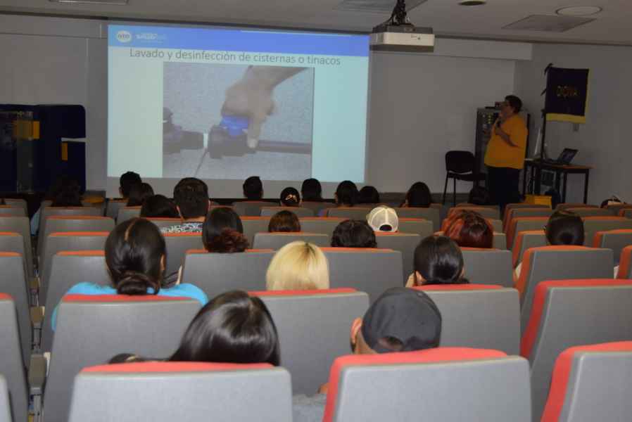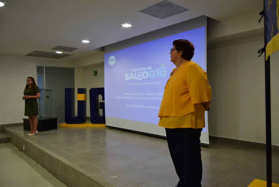 La M. en C. Ma. Guadalupe Zanella Vargas, administradora de la coordinación de protección contra riesgos sanitarios de la Jurisdicción Sanitaria VI, acudió a la División de Ciencias de la Vida para capacitar a la comunidad estudiantil que participará en el proyecto que será patrocinado por la empresa irapuatense Tonic Life, con apoyo de la Secretaría de Desarrollo Económico Sustentable del Gobierno del Estado de Guanajuato y el Municipio de León.