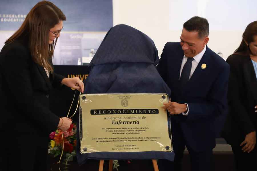 En el evento protocolario se realizó la develación de las placas conmemorativas en reconocimiento a las y los profesores de enfermería de los cuatro Campus de la Universidad de Guanajuato: Celaya-Salvatierra; Irapuato-Salamanca; Guanajuato; y León.