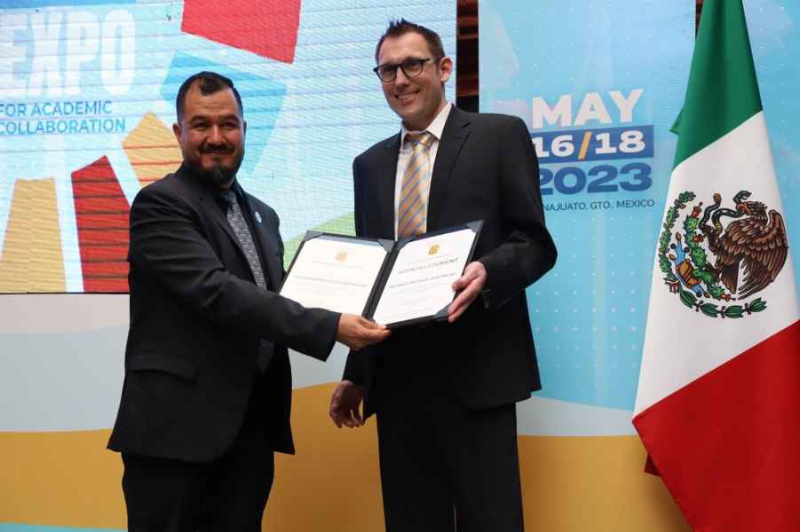 Guanajuato, Gto., a 17 de mayo de 2023.- En la Universidad de Guanajuato (UG), con el objetivo de promover la interacción en materia de intercambio del estudiantado, profesorado y personal administrativo y mejora en las futuras colaboraciones multidisciplinares, se llevó a cabo la Inauguración del 8vo Foro y Expo Internacional de colaboración Académica y 20 años de colaboración con FH Dormunt Alemania.