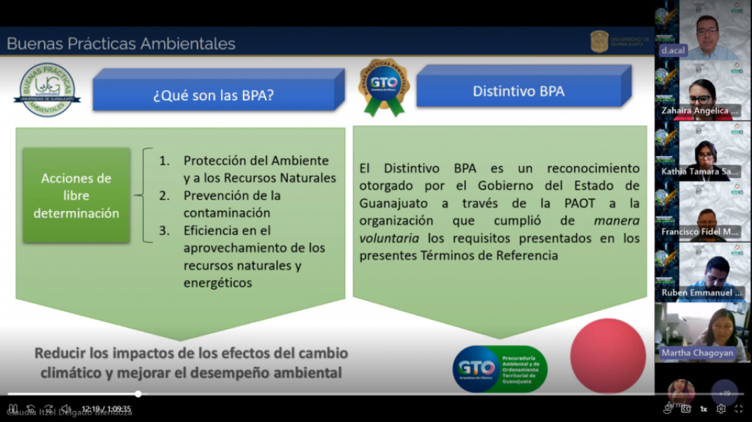En esta ocasión se celebró de manera virtual una charla de trabajo, que da cuenta de los diversos trabajos en materia de Buenas Prácticas Ambientales que realizan diversas áreas de la administración central y los campus universitarios, así como el Colegio del Nivel Medio Superior.