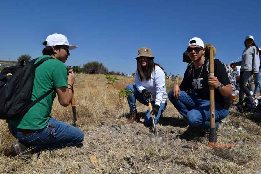 Mario Alberto Mejía Pérez, alumno del octavo semestre de Ingeniería en Agronomía y alrededor de 180 alumnas y alumnos de la sede Irapuato, de la Agrupación Forestal y Ambiental de la Universidad de Guanajuato (AFAUG) apoyaron los trabajos de arborización, con la coordinación del Dr. Héctor Gordon Núñez Palenius y la Dra. Ana Isabel Mireles Arriaga, personal académico del programa de Agronomía.