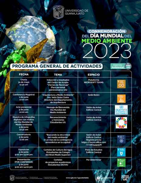 Guanajuato, Gto., a 06 de junio de 2023.- La Dirección de Igualdad y Corresponsabilidad Social, a través del Departamento de Manejo Ambiental y Sustentabilidad, la Universidad de Guanajuato (UG) coordinó diversas de actividades en torno al Día Mundial del Medio Ambiente 2023.