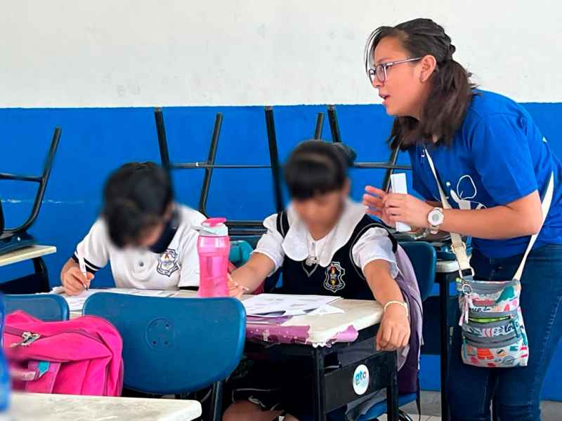 Guanajuato, Gto., a 12 de junio de 2023.- Como parte de las actividades del programa Abejas Tutoras UG, el cual se desarrolla por parte de la Dirección de Desarrollo Estudiantil y el Programa Univerciudad UG; estudiantes de licenciatura aplicaron un examen diagnóstico a estudiantes de quinto y sexto año de primaria de los municipios de Silao de la Victoria y la Comunidad del Copal en la ciudad de Irapuato.