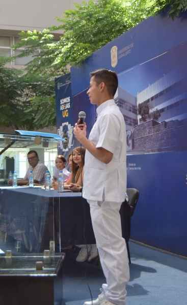 Los egresados Roberto Torres Aguilar y José Manuel Orozco Guerrero, dieron un mensaje a nombre de sus compañeras y compañeros de generación, señalando que se llevan alegrías, amistades y experiencias compartidas.