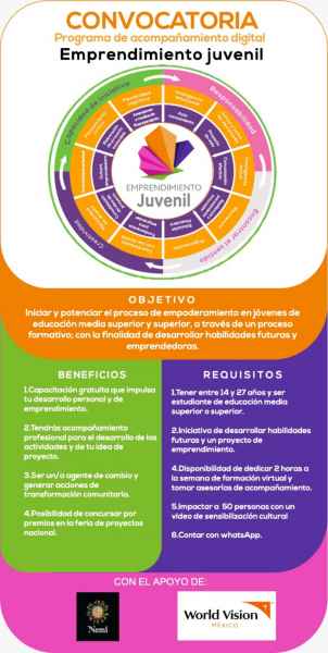 El programa se adapta adecuadamente a las necesidades y tiempos de los y las estudiantes, para no interferir con su programa académico. El objetivo fue iniciar y potenciar el proceso de empoderamiento en jóvenes de educación media superior, desarrollando habilidades emprendedoras. En este periodo, los y las estudiantes de las ENMS participantes recibieron capacitaciones gratuitas con acompañamiento profesional para el desarrollo de actividades emprendedoras y la idea de un proyecto; con la finalidad de preparar a jóvenes para ser agentes de cambio y generar acciones de transformación comunitaria.