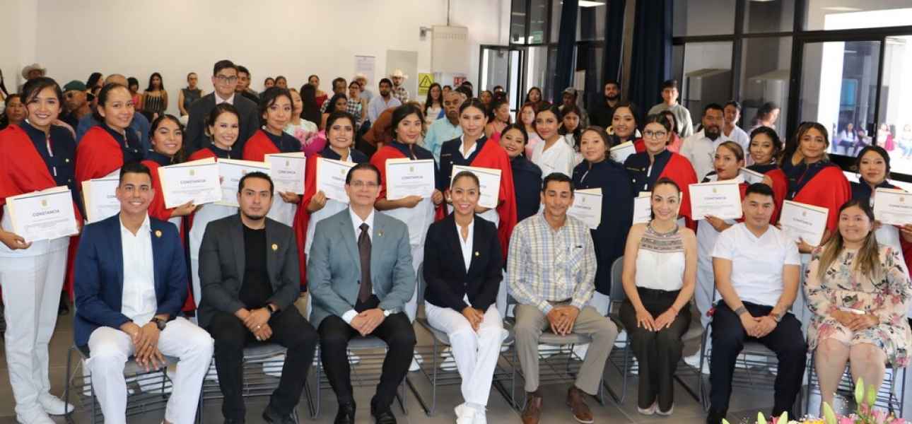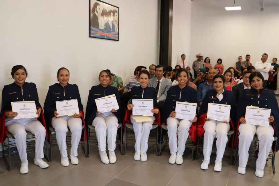 Diana Velázquez Gonzáles (primer lugar), Ángeles Viridiana Torres Almonci (segundo lugar) y Jennifer Cruz Buenrostro (tercer lugar) recibieron además un reconocimiento por aprovechamiento académico de la generación 2019-2023.