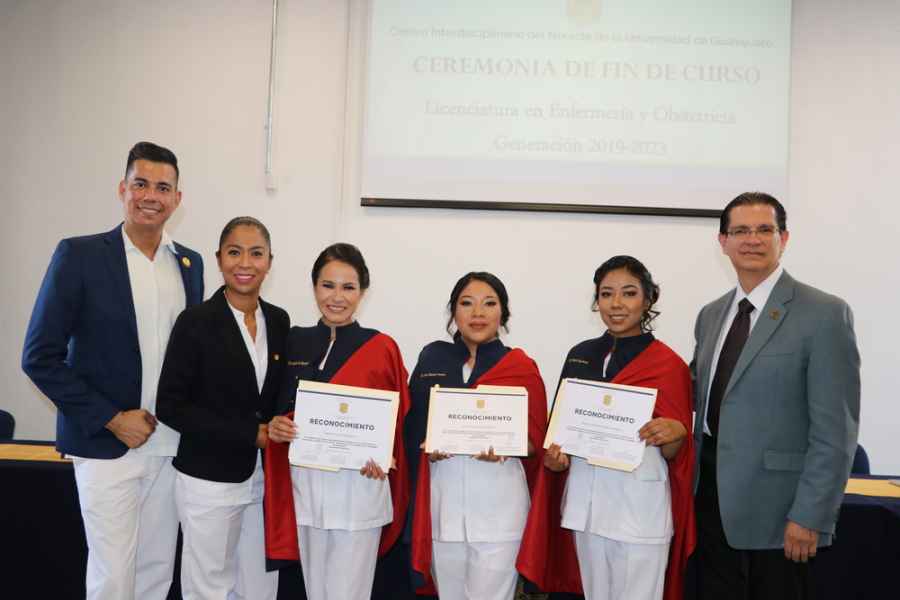 Tierra Blanca, Gto. a 27 de junio de 2023.- Durante la ceremonia de fin de cursos del programa de Lic. en Enfermería y Obstetricia en la sede Tierra Blanca de la Universidad de Guanajuato (UG) se hizo un merecido reconocimiento a tres estudiantes con los mejores promedios.