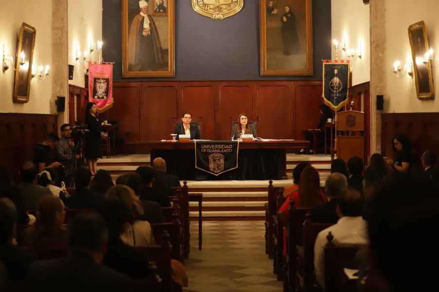 Guanajuato, Gto. a 28 de julio de 2023.- Por unanimidad, el Consejo General Universitario (CGU) aprobó las candidaturas de la doctora Teresita de Jesús Rendón Huerta Barrera, el doctor Carlos Hidalgo Valadez, la doctora Claudia Susana Gómez López, el doctor Armando Gallegos Muñoz y el doctor Ricardo Valdez González, quienes cumplen con los requisitos normativos para ser titular de la Rectoría General de la Universidad de Guanajuato.