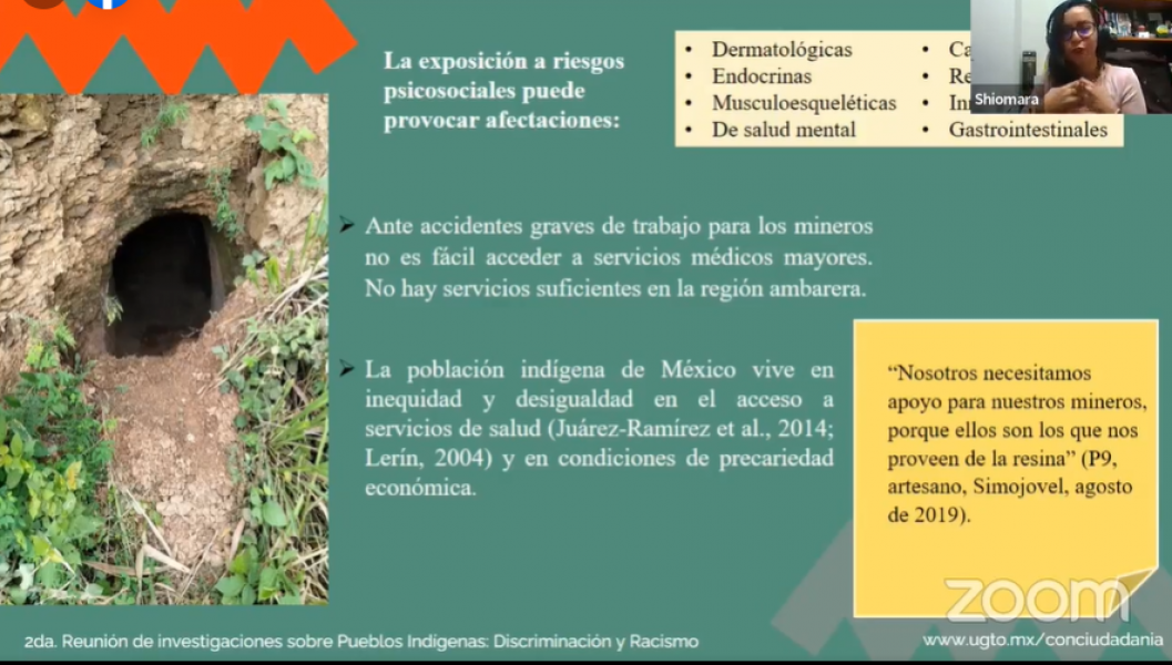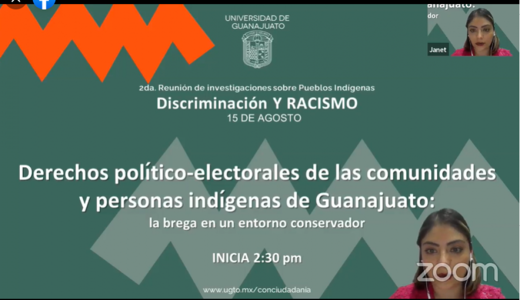 “Retos y necesidades de población minera tsotsil del ámbar de Simojovel, Chiapas”, “La salud en el adulto mayor indígena”, “Derechos político-electorales de las comunidades y personas indígenas de Guanajuato: la brega en un entorno conservado”, “Testimonio de discriminación”.