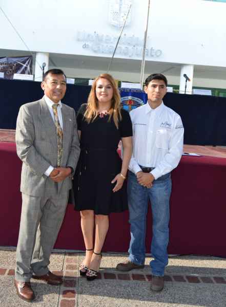 En la plaza cívica de la División de Ingenierías del Campus Irapuato-Salamanca (DICIS), se congregaron autoridades universitarias, comunidad académica y estudiantil, así como invitados especiales, para reconocer a dos destacados miembros ASME: el Dr. Eduardo Aguilera Gómez con el premio ASME al profesor destacado y al Dr. Abel Hernández Guerrero, por su labor de asesor de la sección estudiantil.