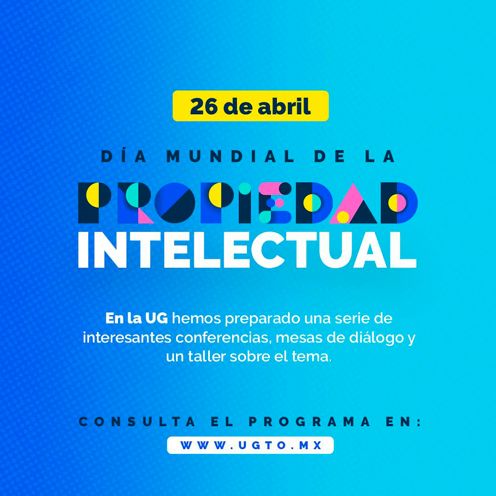 Guanajuato, Gto., a 25 de abril de 2022.- La Universidad de Guanajuato (UG) invita a la comunidad universitaria a formar parte de la conmemoración del Día Mundial de la Propiedad Intelectual en la UG 2022, el cual se celebrará con una serie de actividades que van desde conferencias, mesas de diálogo y un taller.