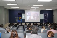 El Dr. Mauro Napsuciale Mendivil, Director de Apoyo a la Investigación y al Posgrado, estuvo presente en la ceremonia y destacó la importancia de la participación de la comunidad académica -profesores(as) y estudiantes- en la nueva universidad que emergerá a partir de las nuevas realidades mundiales que se vislumbran en el escenario internacional, tema que amplió en la conferencia titulada "Retos y perspectivas derivados de la pandemia y la investigación".