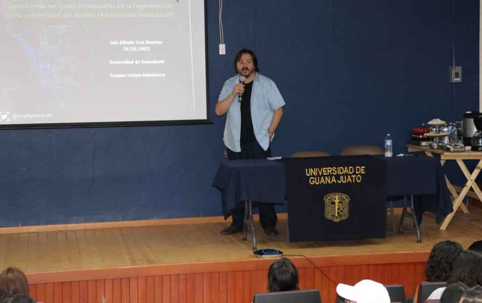 El encargado de abrir el programa fue el Dr. Luis Alfredo Cruz Ramírez, del Laboratorio Nacional de Genómica para la Biodiversidad (Langebio-Cinvestav-Irapuato), con la conferencia magistral “Descifrando las bases moleculares de la regeneración de tejidos en el Ajolote”.