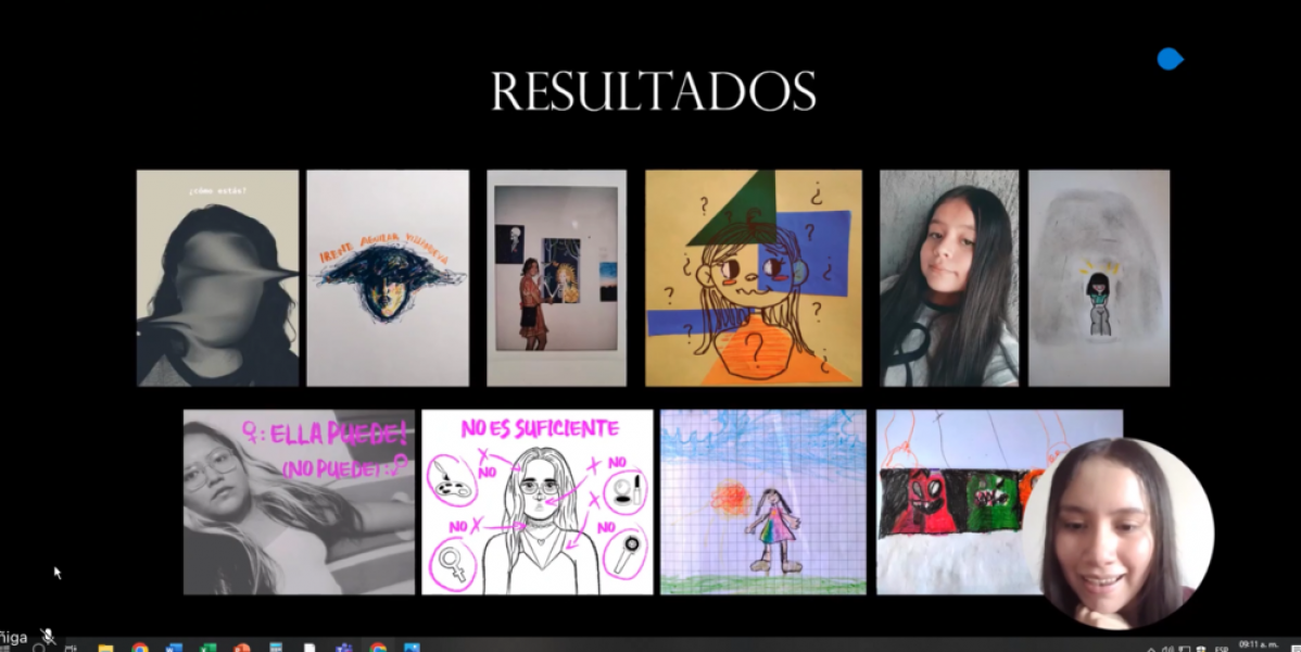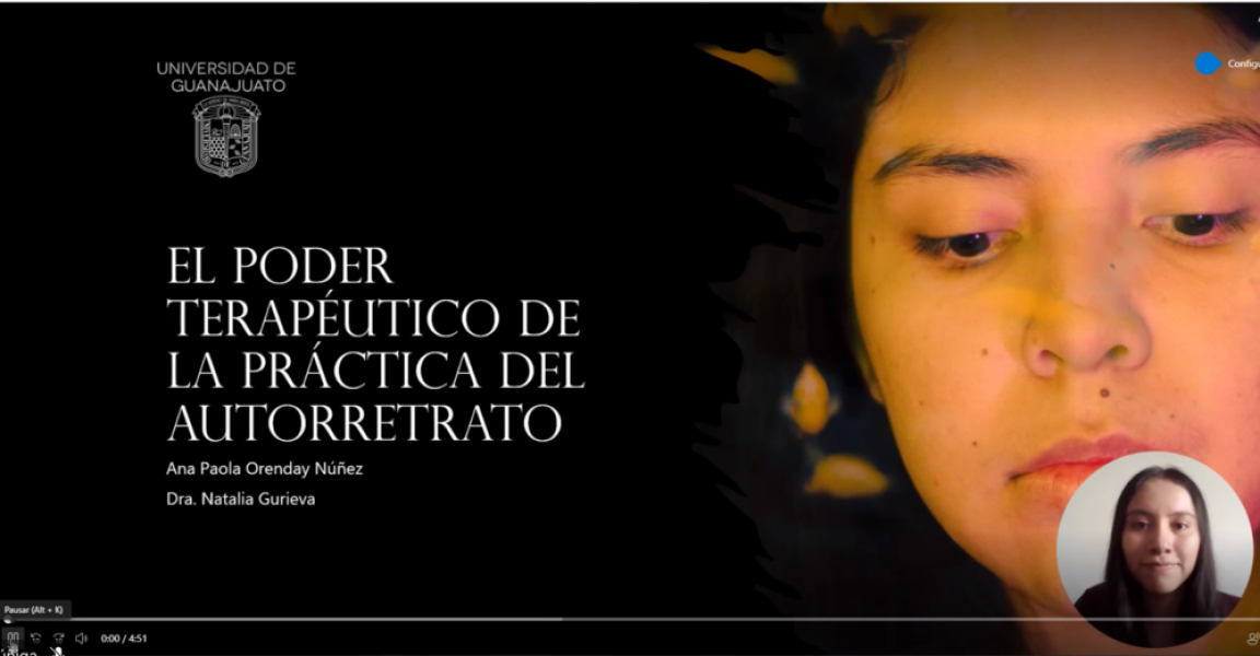 Para iniciar la presentación de los trabajos que desarrollaron durante el semestre enero – junio, Ana Paola Orenday Núñez, alumna de la Licenciatura en Artes Digitales en la sede Salamanca, presentó el proyecto “El Poder Terapéutico de la práctica del Autorretrato”. Con la asesoría de la Dra. Natalia Gurieva, la alumna obtuvo autorretratos digitales y tradicionales de 10 individuos voluntarios (adultos y niños) para desglosar una exploración hacia ellos mismos en función de cómo se sienten, como un ejercicio de autoconocimiento.