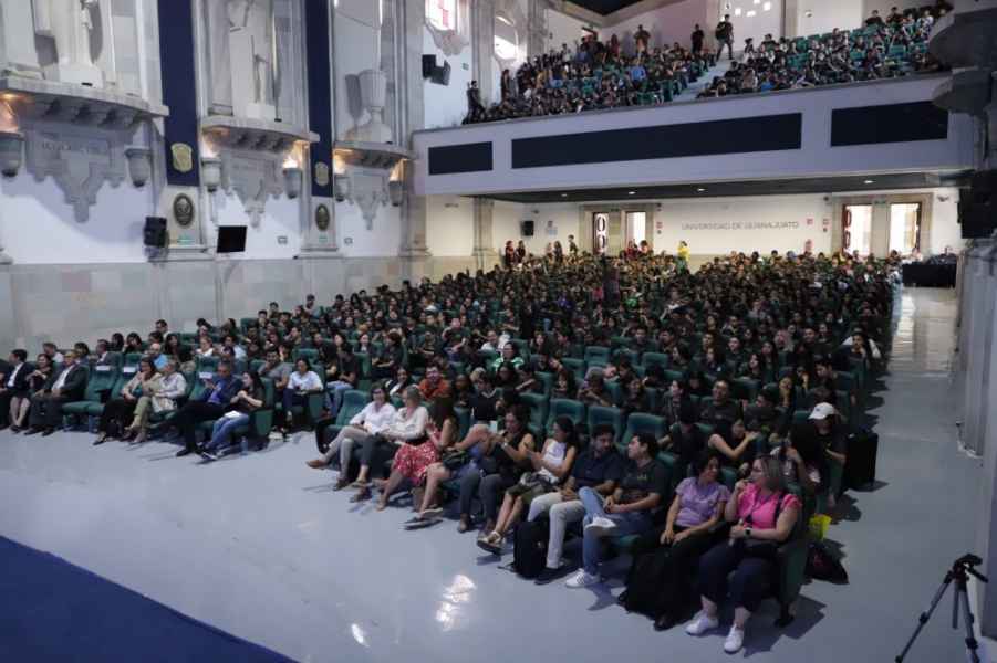 Con gran entusiasmo el Dr. Cuauhtémoc Sandoval, académico de la UG, compartió cómo se interesó por la investigación, con una historia que comenzó al ser el hermano menor de 20 hijos, y cómo su madre motivó su curiosidad, la cual abonó día a día con diversas preguntas internas, que al comenzar sus estudios superiores comenzó a responder.