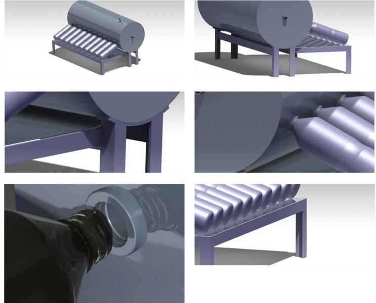 Se trata de un dispositivo para incrementar la temperatura de líquidos, que puede ser agua o aceite, cuyo principio radica en que, mediante energía solar, se calienta una botella, posteriormente el calor se transfiere hacia el agua, el agua sube hacia un tanque por el cambio de temperatura, ya que el agua caliente tiende a ir hacia arriba, mientras que el agua fría se queda en la botella para seguir calentándose. Agrega que: “La idea, además de incrementar la temperatura de diferentes fluidos es reutilizar botellas de plástico”.