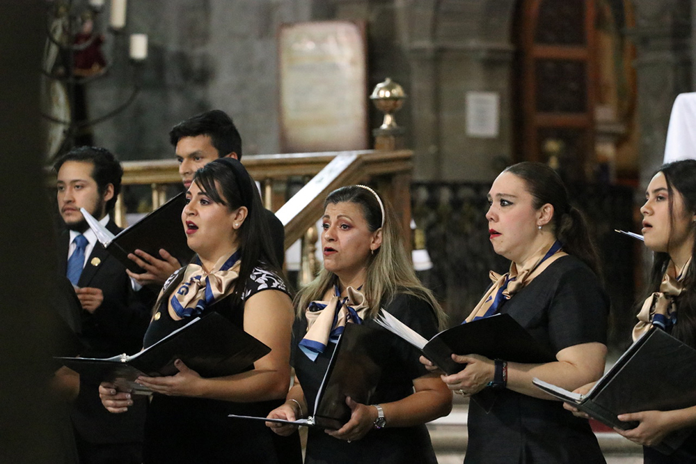 De igual forma cantaron en náhuatl la pieza "Xicochi, Xicochi" un villancico escrito por Gaspar Fernández, así como "The lord bless you and keep you" de Peter C. Lutkin, el Coro de la UG demostró su talento bajo la batuta de su director titular José Francisco Martínez.