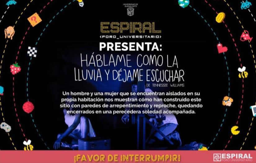 Guanajuato, Guanajuato a 15 de mayo de 2020.- Del 6 al 15 de mayo el grupo organizado Espiral Foro Universitario vivió su edición un número 11, en la que a través de actividades en línea cumplieron el objetivo de difundir el arte y la cultura mediante proyectos organizados por la comunidad estudiantil.