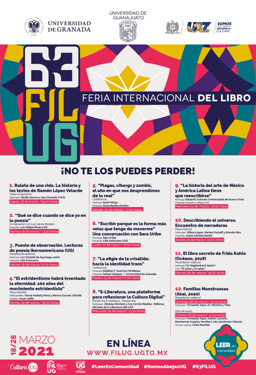 Para conocer toda la programación de actividades de la FILUG se puede visitar el sitio de internet http://www.filug.ugto.mx/
