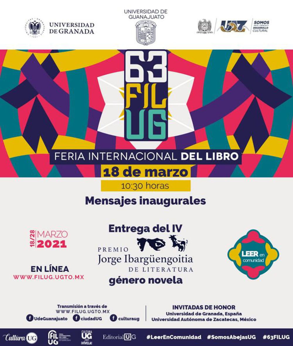 Guanajuato, Gto., a 18 de marzo de 2021.- Se inauguraron las actividades culturales de la 63 edición de la Feria del Libro de la Universidad de Guanajuato (FILUG), que en su segunda edición virtual se desarrollará del 18 al 28 de marzo, con más de 140 actividades que incluyen presentaciones editoriales, charlas, mesas de reflexión, homenajes, aniversarios, conferencias, ciclos, salas de cine, eventos artísticos, y exposiciones.