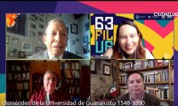 Guanajuato, Gto., a 27 de marzo de 2021.- Con la participación de tres especialistas, se llevó a cabo la mesa Efemérides de la Universidad de Guanajuato 1548-1990, evento virtual que se llevó a cabo como parte de las actividades de la edición 63 de la Feria del Libro de la Universidad de Guanajuato (FILUG).
