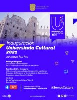Guanajuato, Gto., a 20 de mayo de 2021.- Por primera vez en la Universidad de Guanajuato (UG) se llevará a cabo, del 20 al 28 de mayo, la Universiada Cultural 2021, un espacio de encuentro para promover las manifestaciones artísticas y en donde se fomenta una cultura de paz desde las 54 Instituciones de Educación Superior (IES) que participan.