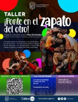 El taller ¡Ponte en el zapato del otro!, impartido por Colectivo teatral Pies Hinchados, dirigido a la comunidad universitaria y sociedad, el taller tiene como finalidad la exploración sobre la mirada de las personas con discapacidad a través del cuerpo, el gesto y la lengua de señas mexicanas. Se realizará del 6 al 9 de septiembre, vía Zoom de 16:00 a 17:00 horas. Para más información sobre el registro y detalles escribir a: Esta dirección de correo electrónico está protegida contra spambots. Usted necesita tener Javascript activado para poder verla..