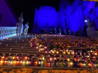 Guanajuato, Gto., a 01 de noviembre de 2021.- Con una ofrenda dedicada a la memoria del Mtro. Eugenio Trueba Olivares, y a quienes fallecieron por la pandemia del COVID 19, autoridades y comunidad de la Universidad de Guanajuato (UG) inauguraron la Ofrenda Monumental en las Escalinatas del Edificio Central de la UG en su 20° edición tras pandemia.