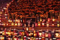 La colorida Ofrenda Monumental, decorada con flores de cempasúchil, papel picado e iluminada con veladoras, se ha consolidado como una de las más emblemáticas en Guanajuato capital, Su origen data del año 2002 gracias al profesor Jesús Antonio Borja Pérez quien, en conjunto con estudiantes de la Escuela de Nivel Medio Superior (ENMS) de Guanajuato, año tras año se encargan de dar vida a la también simbólica escalinata de la UG, al fomentar el conocimiento, símbolos y ritos de tradición de Día de Muertos.