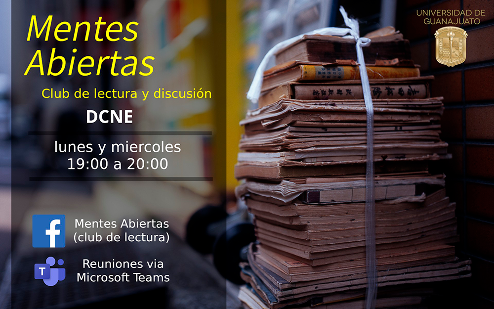 El Club de lectura y discusión: Mentes Abiertas DCNE, te invita a sumarte los días lunes y miércoles en punto de las 19:00 horas a través de Teams y FB: @Mentesabiertasclubdelectura, a un espacio para analizar, comentar, aportar e incluso discutir lecturas con temática diversa.