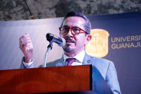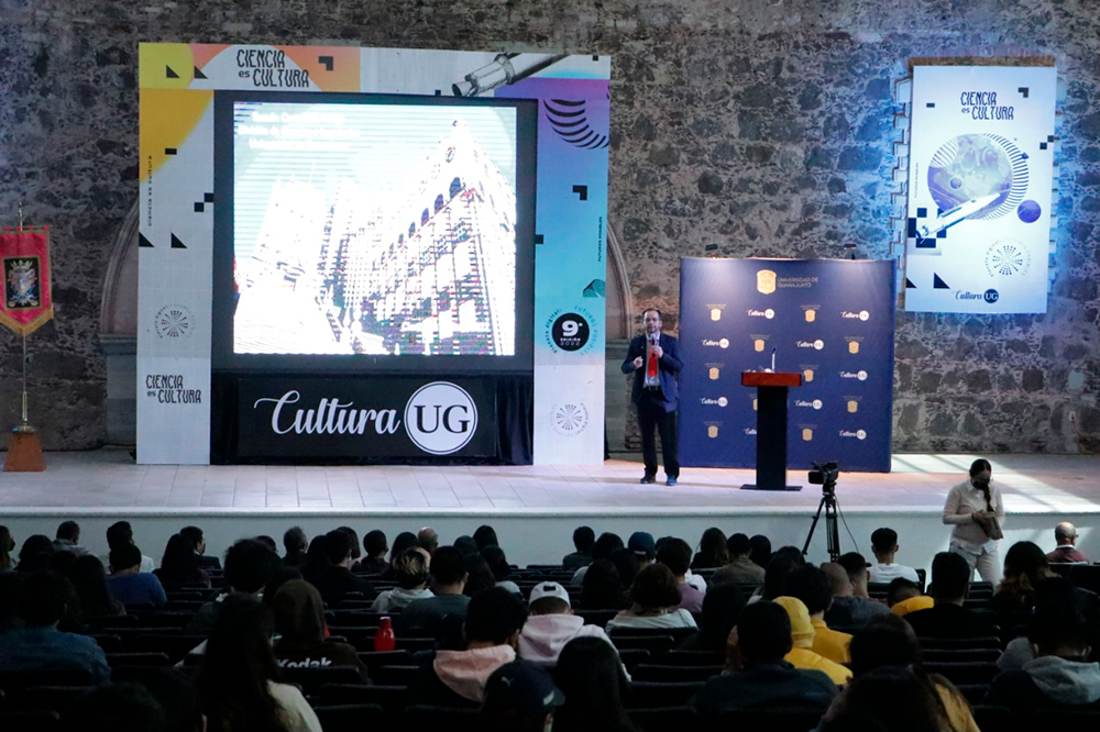 El Dr. Castañeda, profesor adscrito al Departamento de Ingeniería Física de la UG, miembro del Sistema Nacional de Investigadores, nivel III, quien ha recibido numerosas distinciones por su trabajo académico, compartió con la comunidad estudiantil sus motivaciones para dedicarse al trabajo científico, así como experiencias que han marcado su trayectoria, y les exhortó a aprovechar las oportunidades que tienen para formarse.