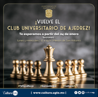 Finalmente continúan las sesiones al público en general del "Club Universitario de Ajedrez" los lunes y miércoles de las 17:00 a las 19:00 horas en el Mesón de San Antonio.
