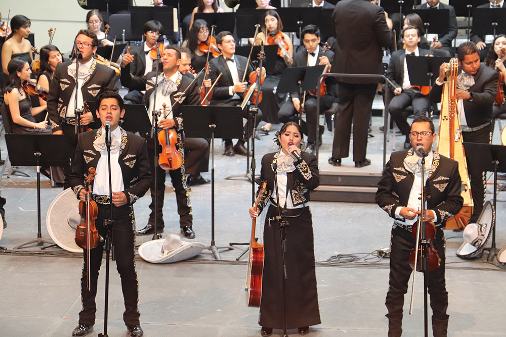 El público asistente al Teatro Principal fue testigo del talento artístico universitario en el cual convergió la cultura en sus diferentes expresiones. Al ritmo del Danzón No. 2, la Camereta Académica Universitaria abrió el concierto para posteriormente unir melodías al son del mariachi.