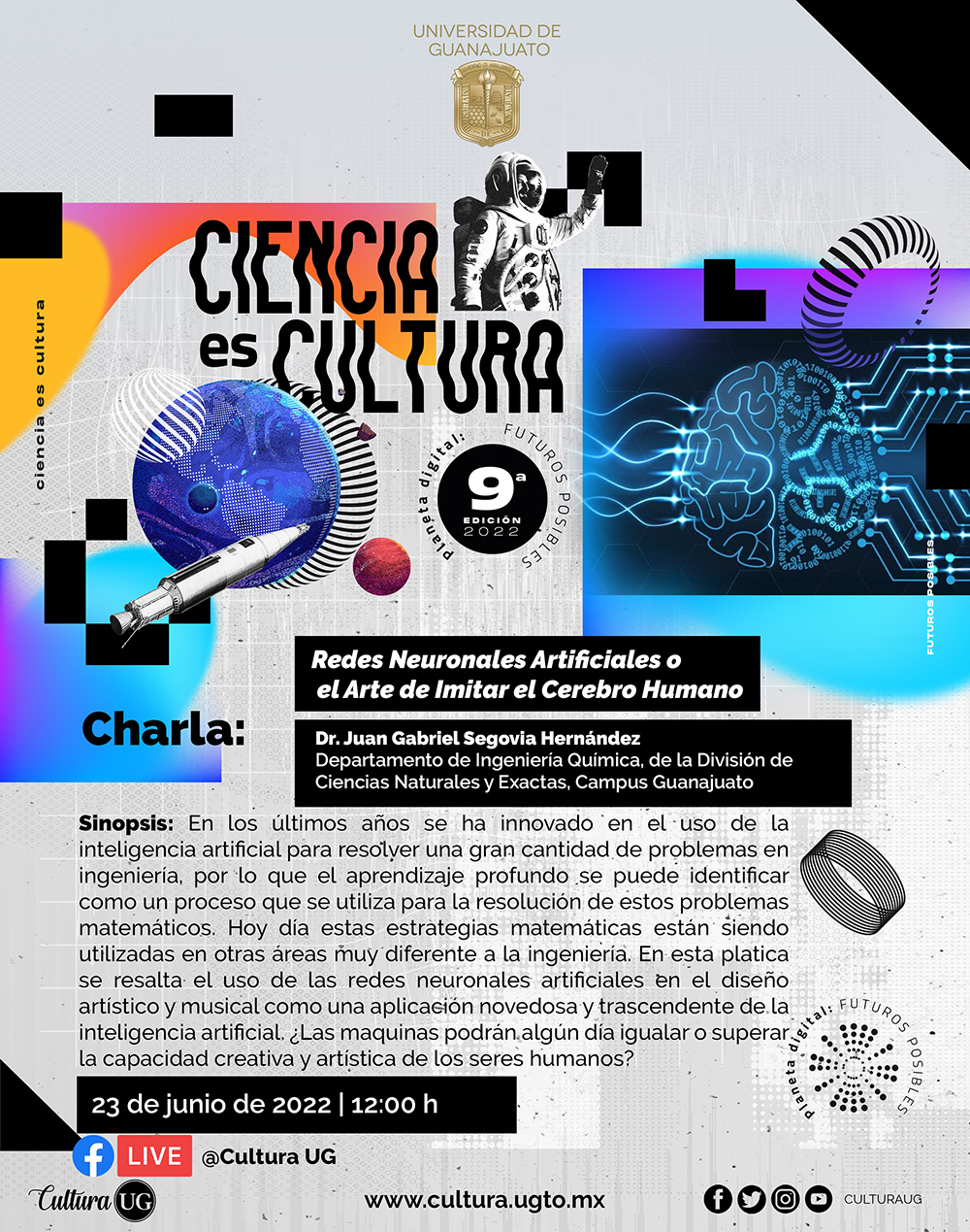 Este 23 de junio a las 12:00 horas a través de FB Live @Cultura UG, "Ciencias es Cultura" invita a la charla "Redes Neuronales Artificiales o el Arte de Imitar el Cerebro Humano" del Dr. Juan Segovia Hernández del Departamento de Ingeniería Química, quien hablará acerca de la inteligencia artificial.