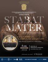También se invita al Concierto Stabat Mater del Coro del Campus Guanajuato dirigidos por el Mtro. Félix Benjamín Torres Romero el 6 de julio a las 19:00 horas en el Patio de la Presidencia Municipal de Dolores Hidalgo, Gto. En San Miguel Allende el Coro de la Compañía de Artes, invitan al Concierto de Ópera y Zarzuela este 7 de julio a las 19:00 horas.