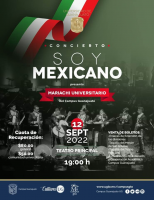 El Mariachi Universitario del Campus Guanajuato se suma al festejo con el concierto "Soy mexicano" este 12 de septiembre a las 19:00 horas en el Teatro Principal.
