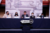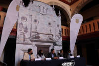 Durante esta rueda de prensa se contó con la presencia del Mtro. Alejandro Guzmán Rojas, Gerente de la Orquesta Sinfónica de la UG (OSUG); el Dr. Mario Ortiz, subdirector del Festival y el Dr. Luis Flores Villagómez, Director del Departamento de Música y Artes Escénicas del Campus Guanajuato.