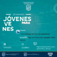 La charla "El problema de los microplásticos" a cargo del Ing. Luis Salvador Valle García, dentro del seminario de jóvenes a jóvenes, se presentará este cinco de octubre a las 12:00 horas con una transmisión en vivo a través de www.youtube.com/watch?v=TPu1_CM-xUk