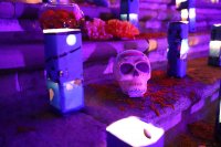 Guanajuato, Gto., a 01 de noviembre de 2022.- Entre luces de veladoras que iluminaban los coloridos papeles picados, bajo el aroma del copal y el cempasúchil, acordes que reviven la memoria de aquellas personas que han partido al Mictlán (el conocido inframundo de la cultura mexica) fue como la comunidad de la Universidad de Guanajuato (UG) conmemoró el Día de Muertos, una de las tradiciones más emblemáticas en la cultura mexicana.