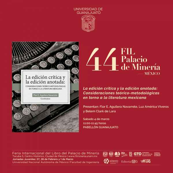 En el Pabellón Guanajuato se podrá disfrutar de la presentación “Después de la heroica fase de exploración. La historiografía urbana en América Latina” este 3 de marzo a las 16:00 horas; y el 4 de marzo a las 11:00 horas se presentará “Consideraciones teórico-metodológicas en torno a la literatura mexicana” que reúne seis artículos de distintos especialistas de la edición crítica y la edición anotada de México.